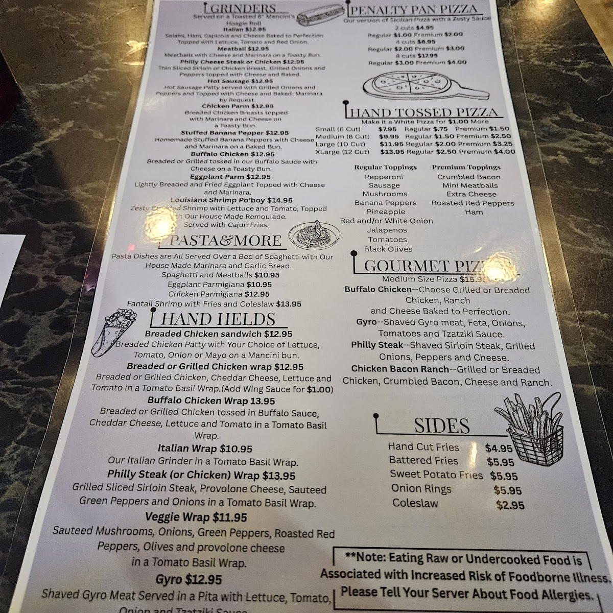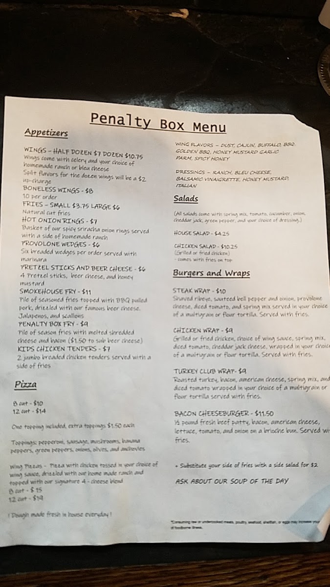 Welcome to Penalty Box, a delightful eatery located at 1220 Freedom Crider Rd, Freedom, PA. This local gem offers a variety of mouthwatering options, with pizzas being a standout. Choose from round pizzas in small, medium, or large sizes, each packed with customizable toppings like pepperoni, bacon, and fresh veggies, starting as low as $6.00. If you prefer something different, their build-your-own calzones offer a delicious twist, served with ricotta and mozzarella for just $7.50.